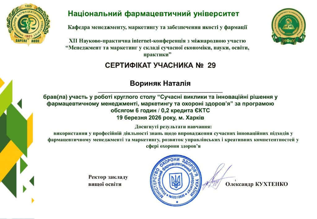 Збірник тез: https://mmqaph.nuph.edu.ua/wp-content/uploads/2026/03/materiali-konferencii_19.03.2026.pdf
