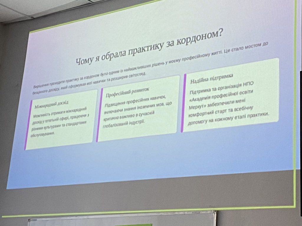 - Камілла МАМЧИЙ – здобувачка вищої освіти 4 курсу денної форми навчання ОПП «Готельно-ресторанна справа».