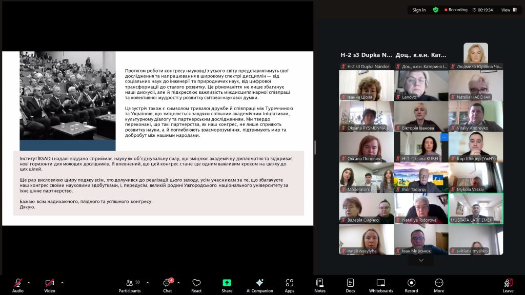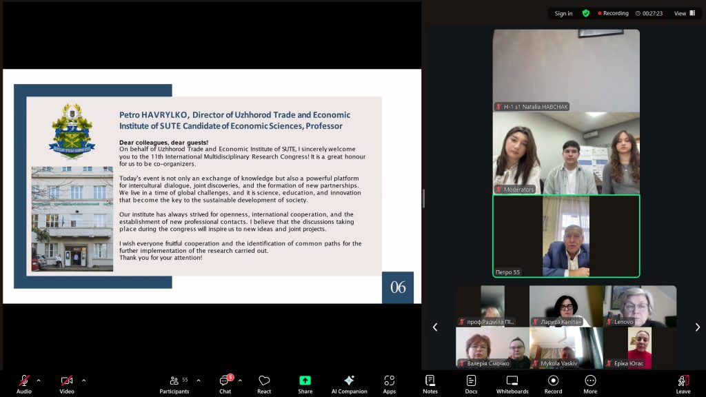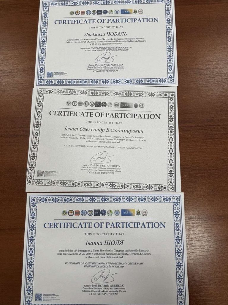 25-26 листопада 2025 року у форматі онлайн відбувся 11 Міжнародний науково-дослідний мультидисциплінарний конгрес організований ДВНЗ «УжНУ», (Україна), Ужгородським торговельно-економічний інститутом ДТЕУ та IKSAD – Інститутом економічного розвитку та соціальних досліджень, (Туреччина).