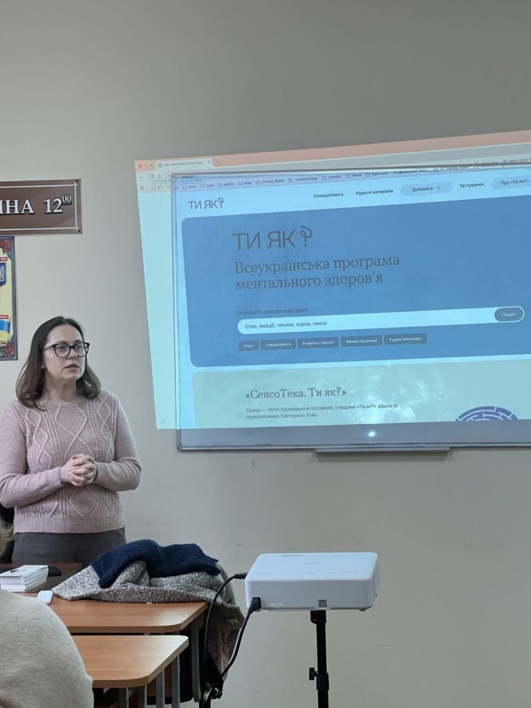 17 лютого, за ініціативи дирекції Інституту та плану просвітницьких заходів, що сприяють підвищенню психологічної компетентності та адаптації до сучасних викликів, Таїсія Симочко (регіональний координатор програми «Ти як»?) провела цікавий захід в межах Всеукраїнської програми ментального здоров’я «Ти як?»: